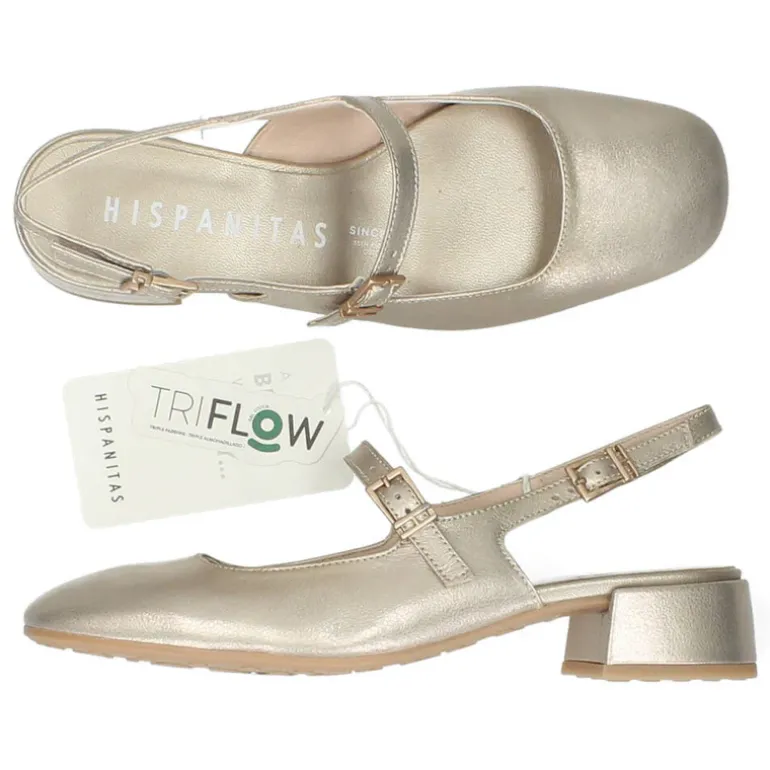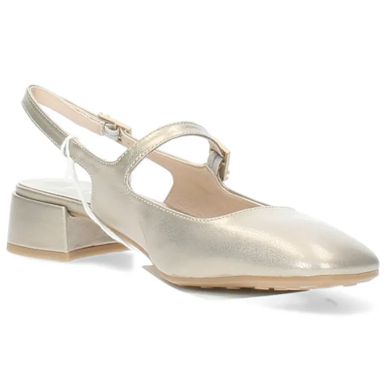 Deze gouden slingbacks hebben een hak van 3 cm.Het model dat we tonen op de foto is maat 37.