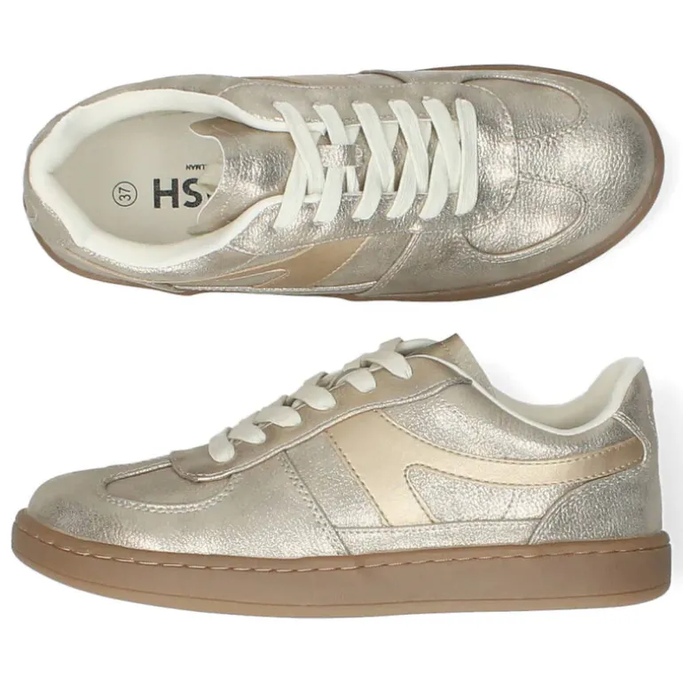 Gouden sneakers met een uitneembare binnenzool .Het model dat we tonen op de foto is maat 37.