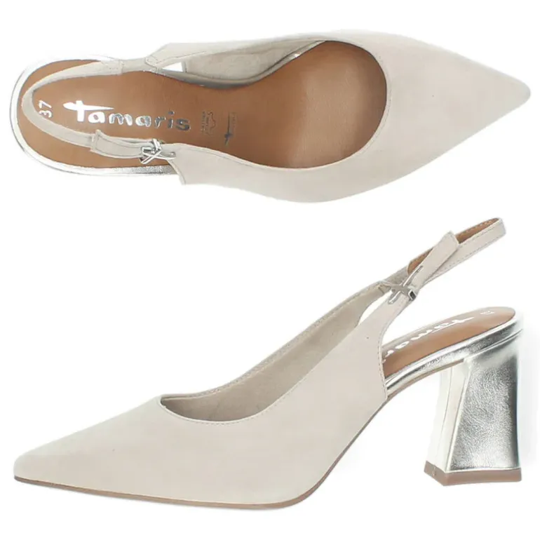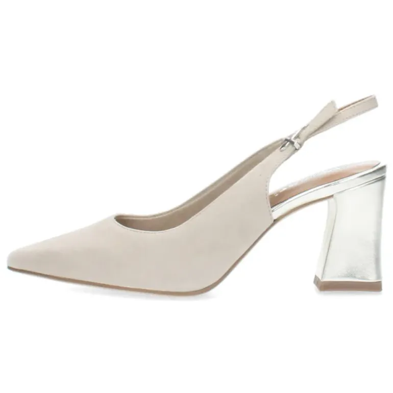 Deze grijs/beige slingbacks hebben een hak van 7 cm.Het model dat we tonen op de foto is maat 37.