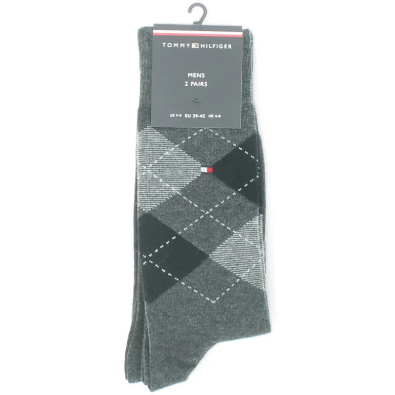 2 paar grijze, lange kousen (1 x print en 1 x effen)