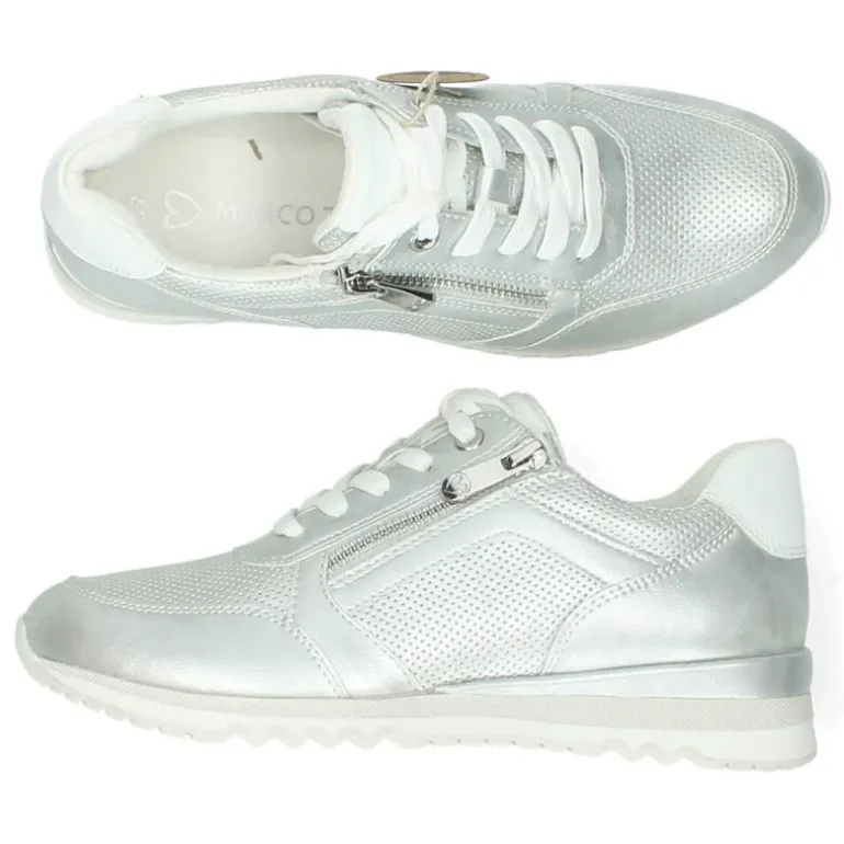 Grijze metallic sneakers met een uitneembare binnenzool en een rits.Het model dat we tonen op de foto is maat 37.