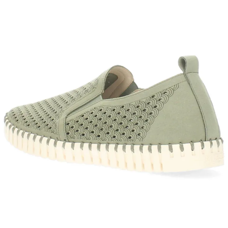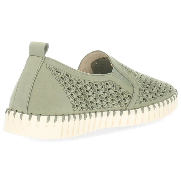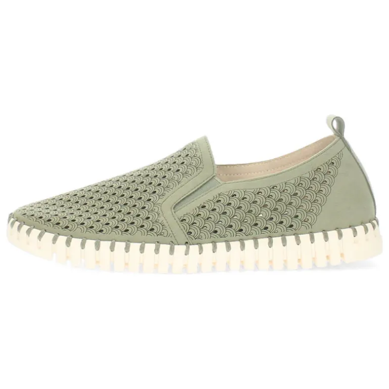 Khaki instappers met een uitneembare binnenzool.Het model dat we tonen op de foto is maat 37.