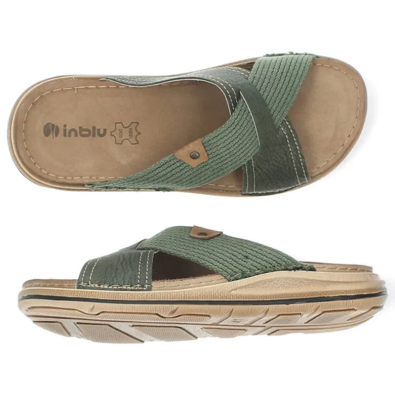 Khaki slippers met een lederen binnenzool.Het model dat we tonen op de foto is maat 41.