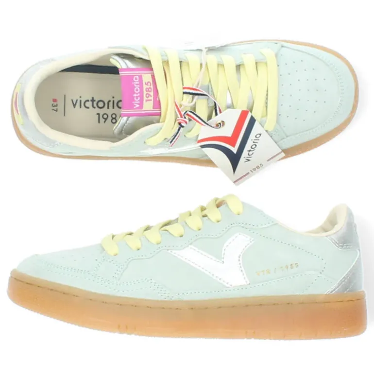 Mintgroene sneakers met een uitneembare binnenzool .Het model dat we tonen op de foto is maat 37.
