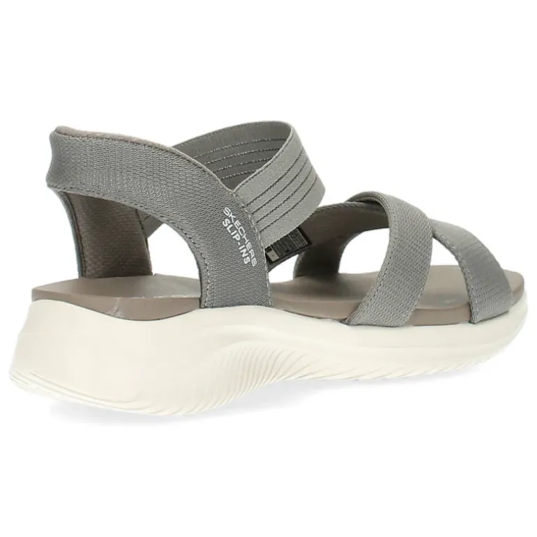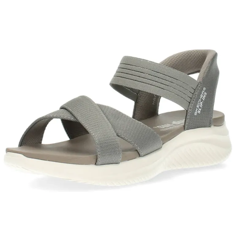 Taupe sandalen met elastische band.Het model dat we tonen op de foto is maat 37.