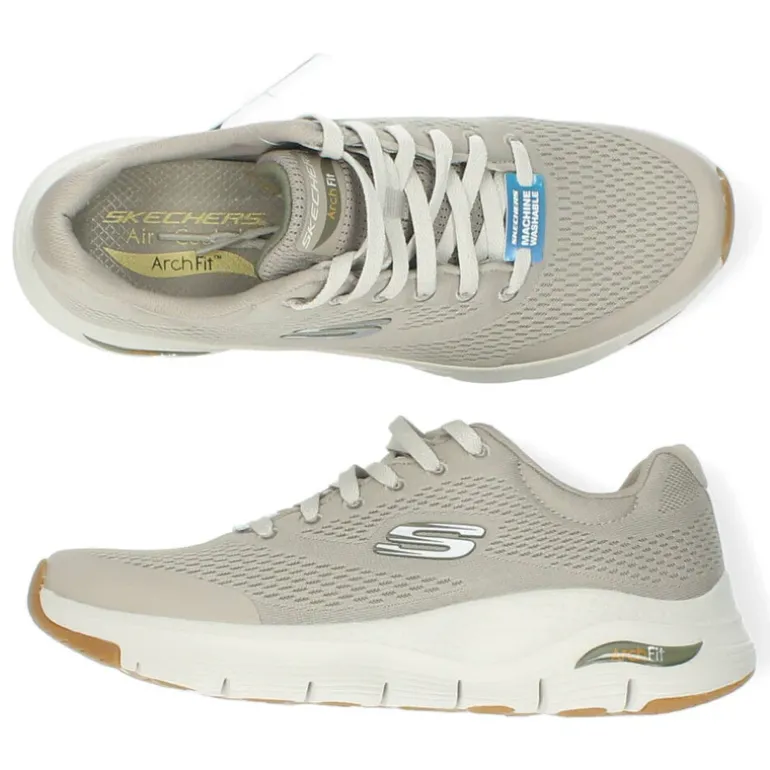 Taupe sneakers met een uitneembare binnenzool .Het model dat we tonen op de foto is maat 41.
