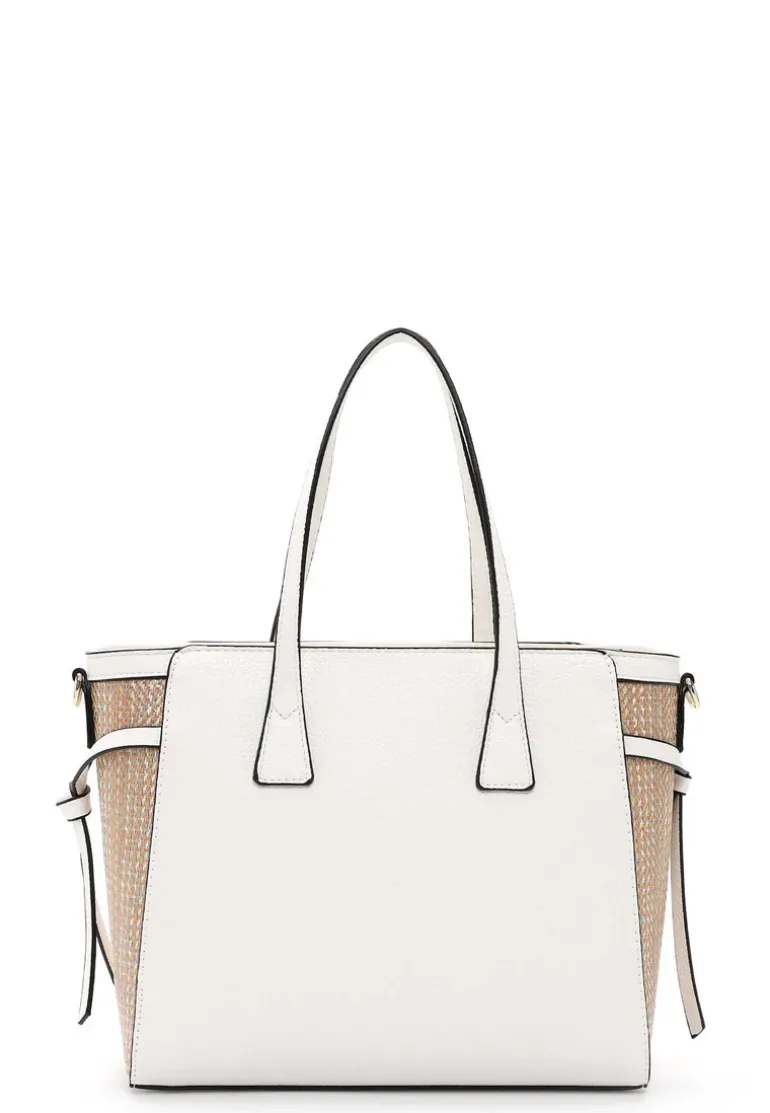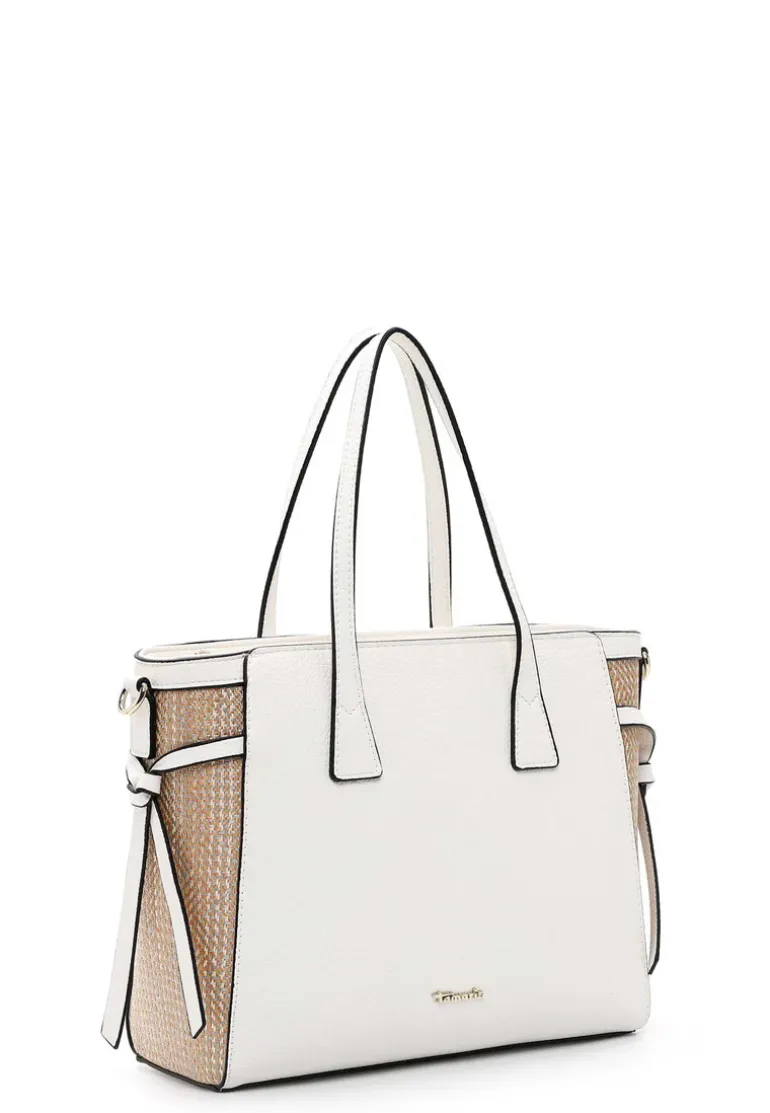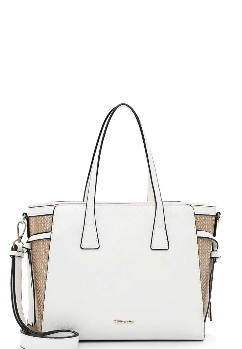 Deze Witte handtas heeft een hoogte van 23 cm, een breedte van 33 cm en een diepte van 11 cm.