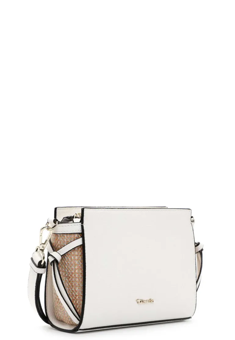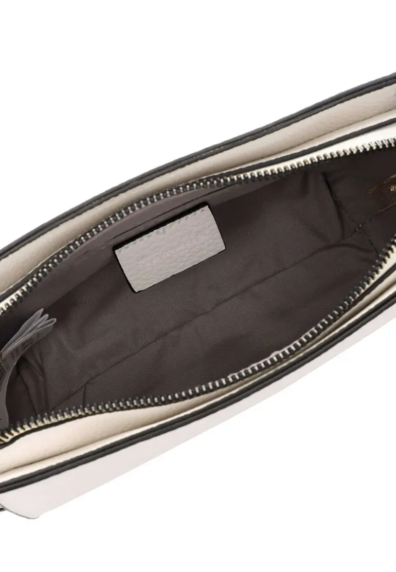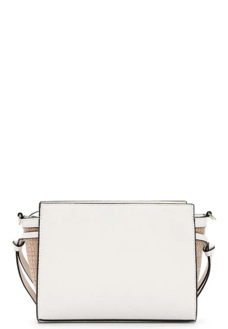 Deze witte handtas heeft een hoogte van 16 cm, een breedte van 21 cm en een diepte van 9 cm.