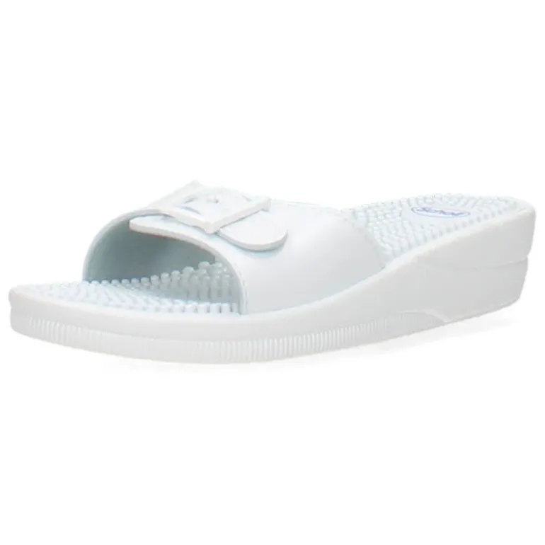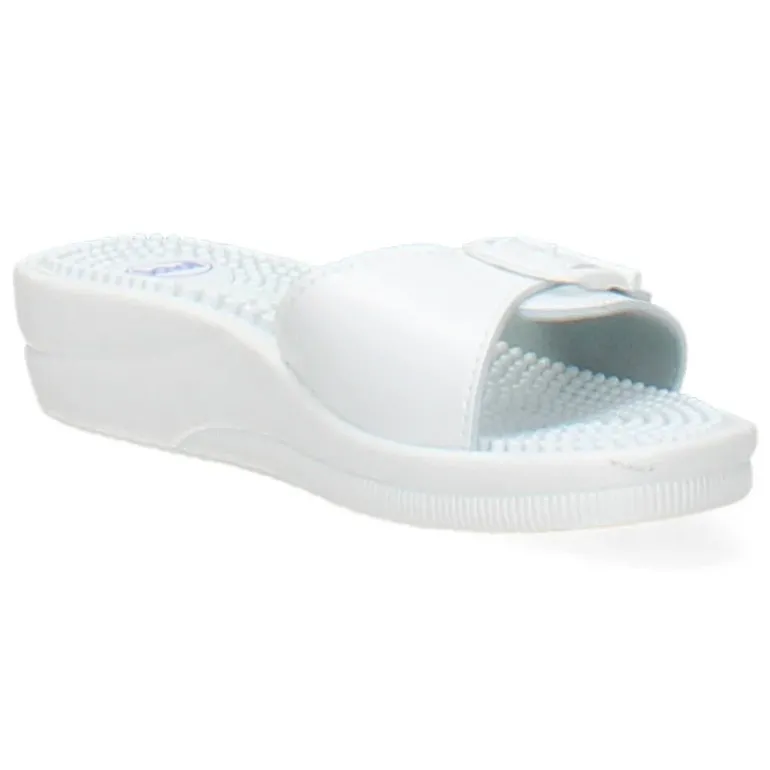 Witte slippers met een ergonomische binnenzool .Het model dat we tonen op de foto is maat 37.