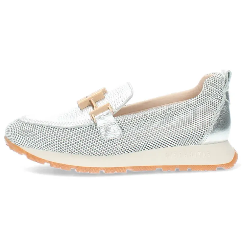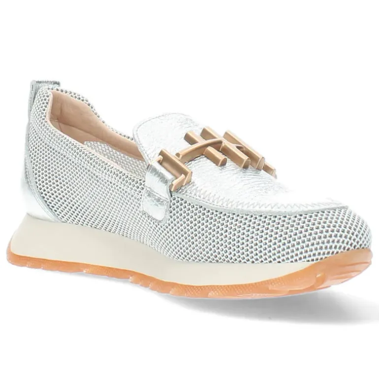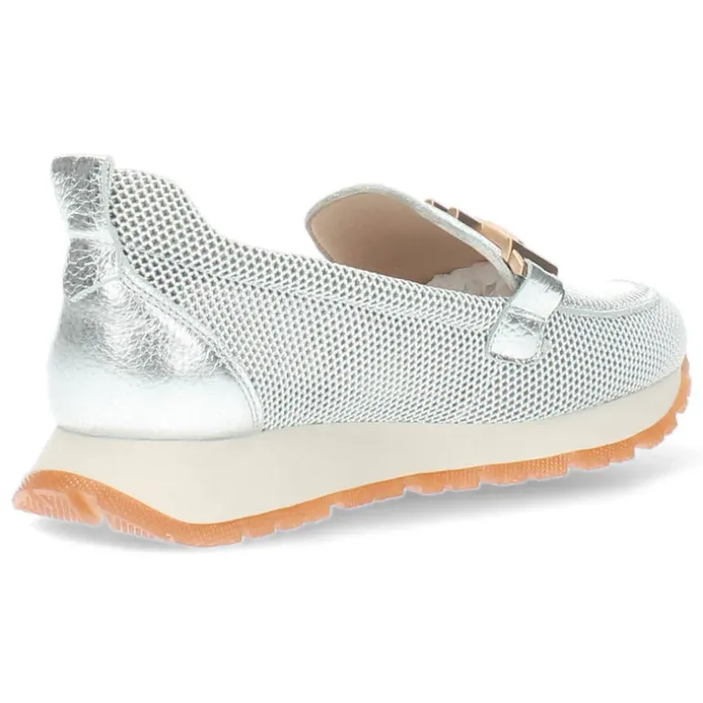Zilveren loafers met een uitneembare binnenzool .Het model dat we tonen op de foto is maat 37.