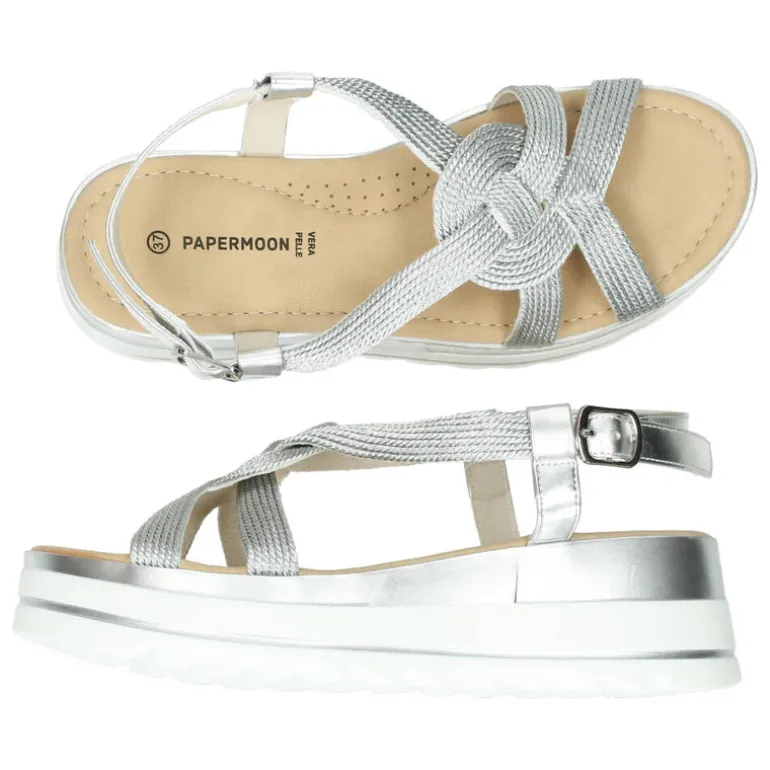 Zilveren sandalen met een lederen zool .Het model dat we tonen op de foto is maat 37.