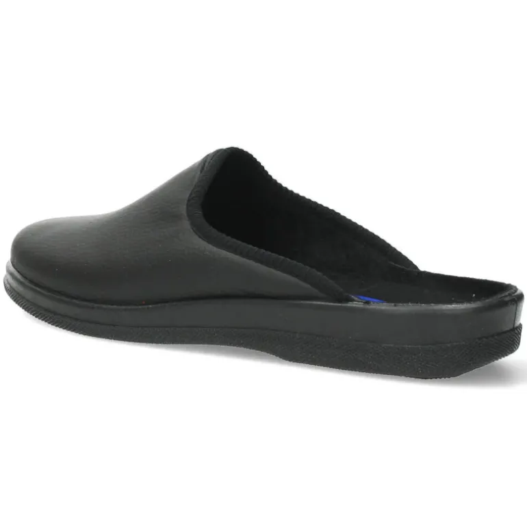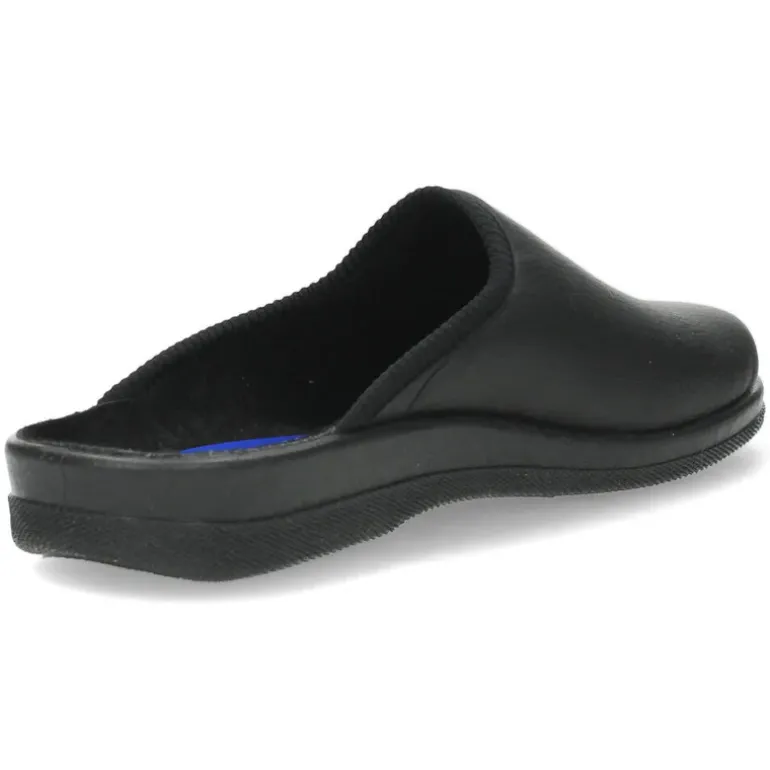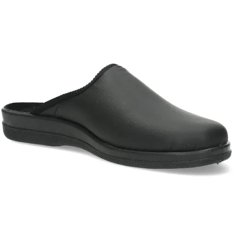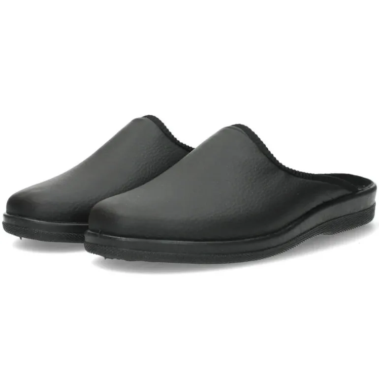 Zwarte pantoffels met een stevige zool.Het model dat we tonen op de foto is maat 41.