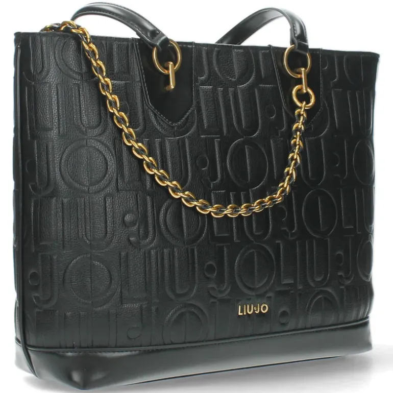 Deze zwarte shopper heeft een hoogte van 30 cm, een breedte van 40 cm en een diepte van 10 cm.